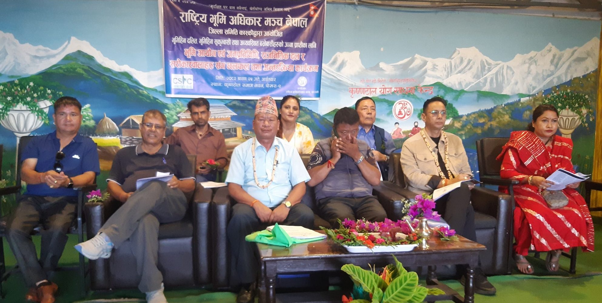 भूमि अधिकार मञ्च कास्की अध्यक्ष प्रेम बहादुर गुरुङको अध्यक्षतामा भएको कार्यक्रममा स्वागत भूमि अधिकार मञ्च पोखरा महानगरका अध्यक्ष कृष्ण परियार र कार्यक्रम संचालन मञ्च कास्कीका सचिव कुमारी गुरुङले गरेकी थिईन ।