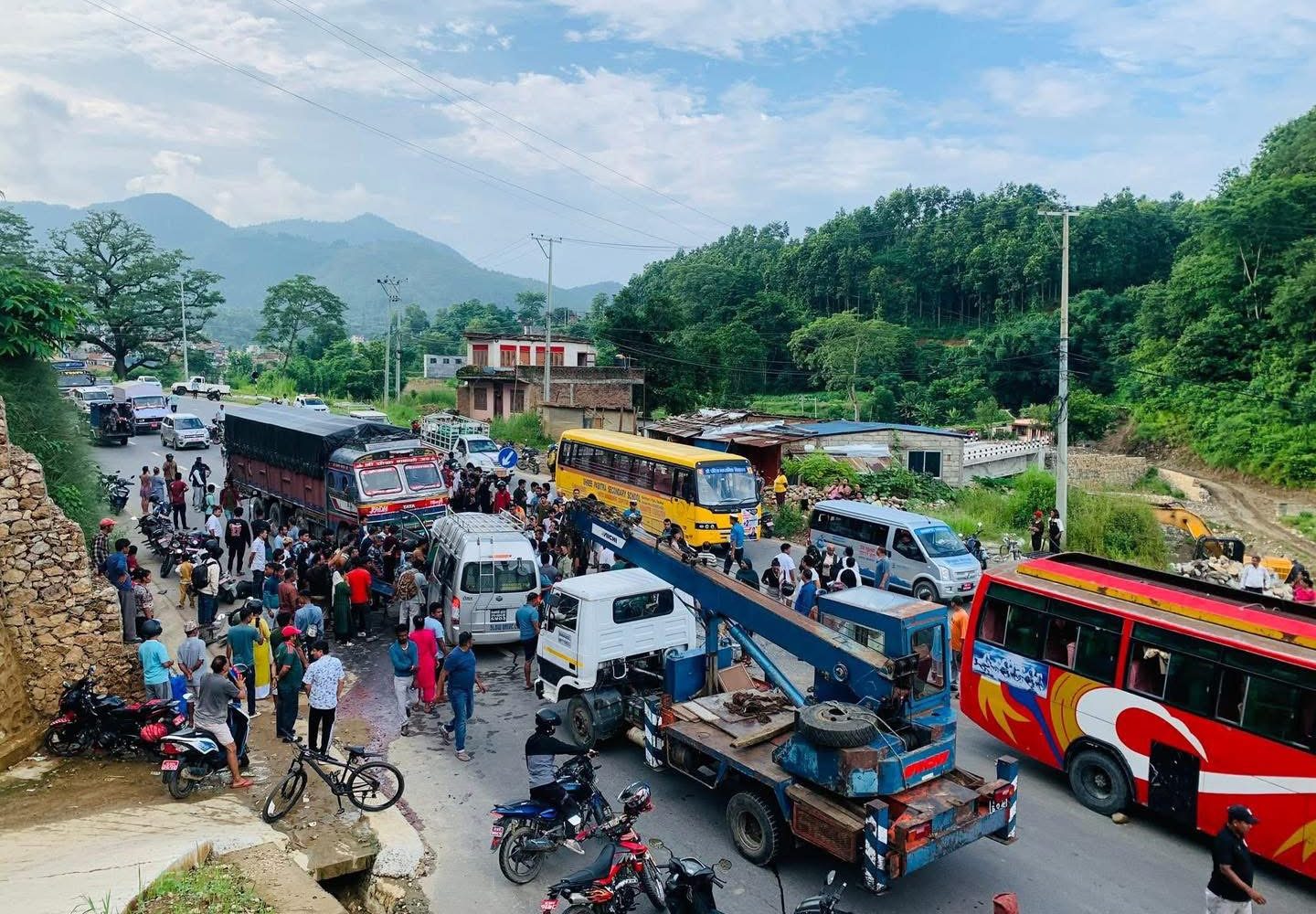 तनहुँ, बन्दीपुर–१ डुम्रे बजार नजिकै पृथ्वी राजमार्गमा माइक्रोबस र यात्रुबाहक बस एक आपसमा ठोक्किँदा दुर्घटना भएको छ। डुम्रेको ठूलो ढुङ्गा नजिकै भएको उक्त दुर्घटनामा २२ जना घाईते भएको र माइक्रोमा च्यापिएका चालकको अवस्था गम्भिर रहेकोले उपचारका चितवन लगिएको र बाँकी घाईतेहरुलाई उपचारका लागि नजिकैका अस्पताल र पोखरा पठाईएको प्रहरी चौकी डुम्रेले जानकारी दिएको छ । वाग्मती प्रदेश ०१–००६ ख ६५०३ नम्बरको काठमाण्डौँबाट दमौलीतर्फ आउँदै गरेको माइक्रोबस विपरीत दिशाबाट आउँदै गरेको ग १ ख ७३२९ नम्बरको बससँग ठोक्किएर उक्त दुर्घटना भएको हो।तस्विरः हलचल खबर