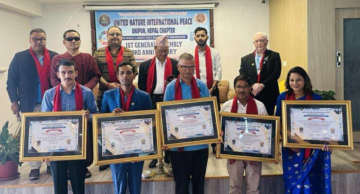 काठमाडौं, भाद्र १ । युनाइटेड नेचर इन्टरनेशनल पिस (युनिप नेपाल) ले आफ्नो पहिलो साधारण सभा तथा तेस्रो वार्षिकोत्सवको अवसरमा विभिन्न संघ संस्था तथा संचारकर्मीलाई सम्मानित गरेको छ । काठमाडौंमा शनिवार सम्पन्न उक्त कार्यक्रम माझ संस्थाले बालबालिका वास्ता नेपाल, राज्य दैनिक, सामुदायिक स्वास्थ्य सेवा परिषद् डल्लु आवास, समाज डेन्टल अस्पताल, तथा पत्रकार प्रमिला पिताम्बरी खतिवडालाई योगदानका लागि सम्मान गरेको हो ।
