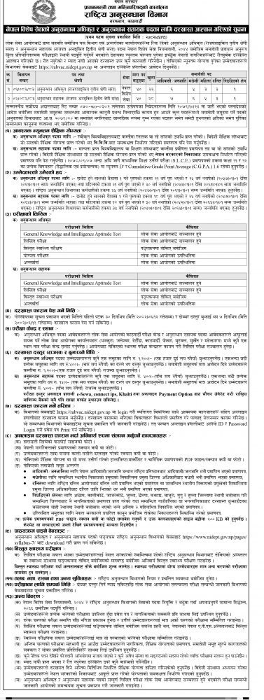 सूचनाअनुसार अनुसन्धान अधिकृत ४० जना र अनुसन्धान सहायक ५० जना माग भएको छ ।