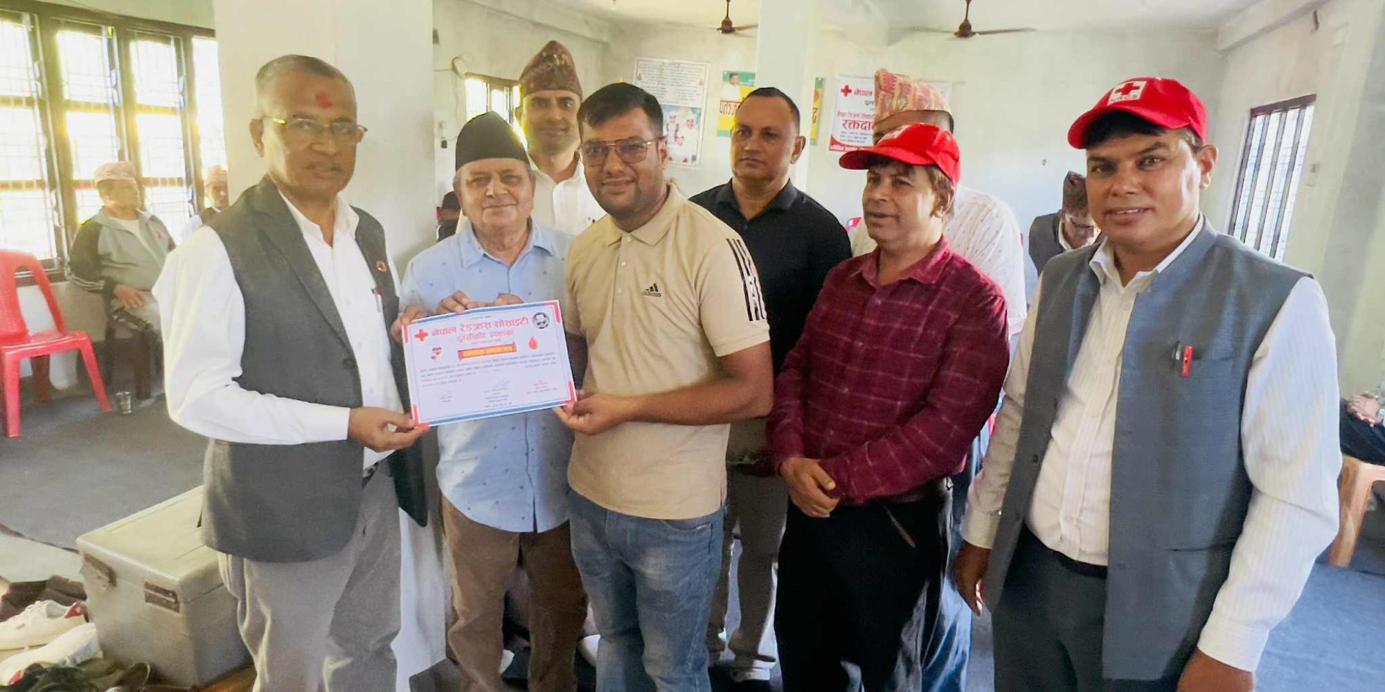तनहुँ । नेपाल रेडक्रस सोसाईटी दुम्सिकोट उप शाखाको रक्तदान कार्यक्रम व्यास नगरपालिका वडा नंं १० डिहिगाउँमा सम्पन्न भएको छ । व्यास नगरपालिकाका प्रमुख बैकुण्ठ न्यौपानेको प्रमुख आतिथ्यतामा भएको कार्यक्रममा व्यास १० का अध्यक्ष खेमराज पोखरेल, नेपाल रेडक्रस सोसाईटी तनहुँ जिल्ला शाखाका सभापति प्रा. कृष्णप्रसाद गौतम, मन्त्री सूर्यचन्द्र हड्खले, रेडक्रसको नेतृत्वदायी भुमिकामा रहेका रेडक्रसकर्मीहरु रामदत्त पौडेल केशु गुरुगं, स्थानिय भद्र भद्रभलाद्मी, विभिन्न संघसंस्थाका प्रतिनिधि, आमा समुहका प्रतिनिधिहरुको सहभागिता रहेको थियो । नेपाल रेडक्रस सोसाईटीको ६३ औं स्थापना दिवसको अवसरमा आयोजित रक्तदान कार्यक्रममा १० जनाले रक्तदान गरेका थिए ।