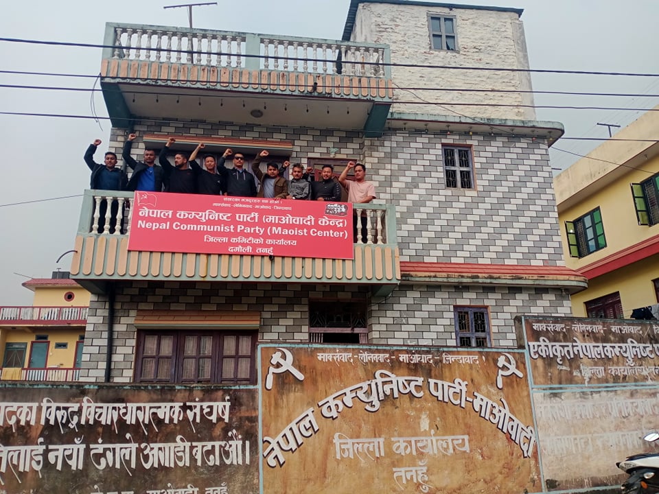 तनहूँ । सर्वोच्च अदालतद्वारा ऋषि कट्टेलको नेकपालाई आधिकारिकता दिएपश्चात तत्कालिन नेकपाका नेता तथा कार्यकर्ताहरु आ आफ्नो पुरानो पार्टीमा फर्कने र आफ्नो पार्टी कार्यालयको झण्डा फेर्ने क्रम चलिरहेको छ । त्यसैक्रममा तनहूँ जिल्लामा पनि नेकपा माओवादी केन्द्रले आफ्नो जिल्ला पार्टी कार्यालयमा नयाँ बोर्ड राखेको छ । विशेष गरि तत्कालिन वाईसिएल र विद्यार्थी संघसंगठनमा आवद्ध भई विभिन्न पदमा रहनुभएका युवा नेताहरुले आज पार्टी कार्यालय प्राङ्गढ सरसफाई गर्नुका साथै पार्टीको बोर्ड राख्ने काम गर्नुभएको थियोे । उक्त अवसरमा तत्कालिन नेकपाका जिल्ला सदस्य एवं युवा नेता ईश्वर बत्स्याल, डम्बर बि. क. ,बादल आले, निर्दोष भट्टराई, अरविन भट्टराई, सुदिन पौडेल , भुवन ढुंगेल, एच् बि मगर लगायतका युवा नेताहरुको सहभागिता रहेको थियो ।