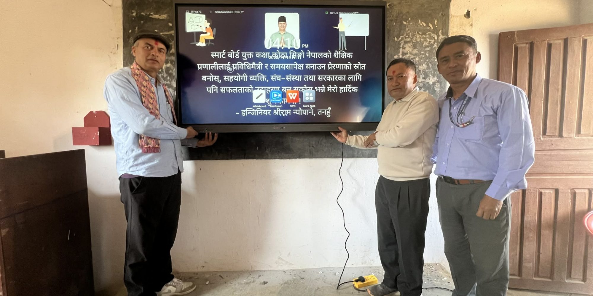 तनहुँ । तनहुँका ग्रामीण भेगका विद्यालयमा शैक्षिक सामग्रीसहित स्मार्ट बोर्ड वितरण गर्दै आएका इन्जिनियर श्रीराम न्यौपानेको सामाजिक पहल शिक्षक तथा विद्यार्थीबीच व्यापक प्रशंसा पाएको छ। ऊर्जा तथा जलस्रोत विज्ञका रूपमा परिचित न्यौपानेले लामो समयदेखि शिक्षा क्षेत्रमा आबद्ध हुँदै आएका छन्। हालै कक्षा १० का विद्यार्थीको शैक्षिक उन्नतिमा सहयोग पु-याउने उद्देश्यले उनले विभिन्न विद्यालयमा स्मार्ट बोर्ड जडान गरिदिएपछि विद्यालय समुदाय अत्यन्तै उत्साहित बनेका छन्। शिक्षकहरूले न्यौपानेको व्यक्तित्व, सामाजिक उत्तरदायित्व र सहयोगी भूमिकाको खुलेर प्रशंसा गर्दै उनका यस्ता कामबाट अन्य व्यक्तिहरू पनि प्रेरित हुने विश्वास व्यक्त गरेका छन्। उनीहरूका अनुसार प्रविधिमैत्री कक्षा सञ्चालनसँगै शिक्षाक्षेत्रले तनहुँमा नयाँ उचाइ लिने अपेक्षा गरिएको छ। स्मार्ट बोर्ड जडान कार्यक्रममा इन्जिनियर न्यौपानेले अझै अन्य विद्यालयमा पनि यस्तो प्रविधि पुर्याउने प्रतिबद्धता व्यक्त गरे। साथै स्मार्ट बोर्ड जडान गरिएका कक्षाकोठामा सिसीटिभी क्यामेरा राख्ने सहयोग पनि गर्दै जाने घोषणा उनले कार्यक्रममै गरे। उनको सक्रियतामा हालसम्म तनहुँका विभिन्न पालिकाका छ वटा विद्यालयमा स्मार्ट बोर्ड जडान गरिएको छ। स्मार्ट बोर्डसँगै काठमाडौँका प्रतिष्ठित विद्यालय—एलआरआई तथा बृहस्पति सदनका कक्षाकोठामा सञ्चालित अध्ययन प्रत्यक्ष अवलोकन गर्न मिल्ने प्रविधि पनि उपलब्ध गराइएको छ, जसले ग्रामीण भेगका विद्यार्थीलाई गुणस्तरीय शिक्षासँग जोड्ने अवसर प्रदान गरेको छ। न्यौपानेद्वारा स्मार्ट बोर्ड तथा एक वर्षका शैक्षिक सामग्री हस्तान्तरण गरिएका विद्यालयहरूमा व्यास नगरपालिका–६ को जनजुक्त शाही माध्यमिक विद्यालय, शुक्लागण्डकी नगरपालिका–४ को पञ्चमुनी देव माध्यमिक विद्यालय, भिमाद नगरपालिका–१ को श्री सिद्धार्थ माध्यमिक विद्यालय, ऋषिगंगा–८ को श्री शिव–सरस्वती माध्यमिक विद्यालय, घिरिङ गाउँपालिकास्थित श्री सरस्वती माध्यमिक विद्यालय, म्याग्दे–४ को मिन माध्यमिक विद्यालय समेत रहेका छन्। स्थानीय शिक्षक तथा विद्यार्थीहरूले ग्रामीण क्षेत्रमै प्रविधियुक्त कक्षा सञ्चालन हुन थालेपछि शिक्षाको गुणस्तरमा उल्लेखनीय सुधार आउने विश्वास गरेका छन्।