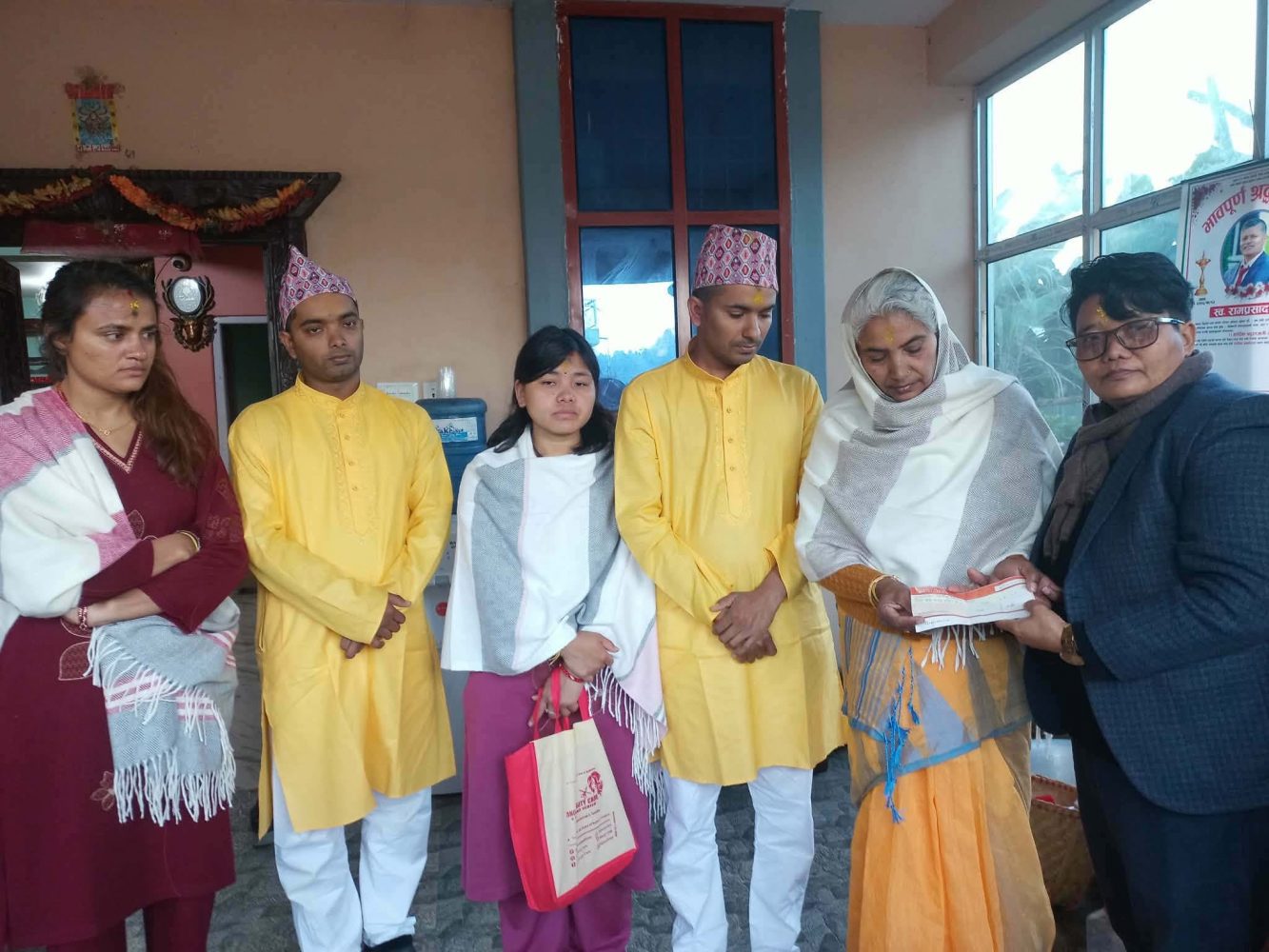 स्वर्गीय पतिको तेह्रौँ दिनको पुण्यतिथिका अवसरमा बिहीबार शारदा गैह्रेले आफ्ना दुई छोरा र दुई बुहारीको उपस्थितिमा संस्थालाई अक्षय कोषको रकम हस्तान्तरण गर्नुभएको थियो।