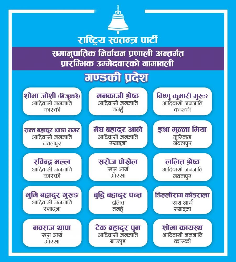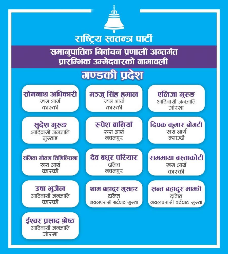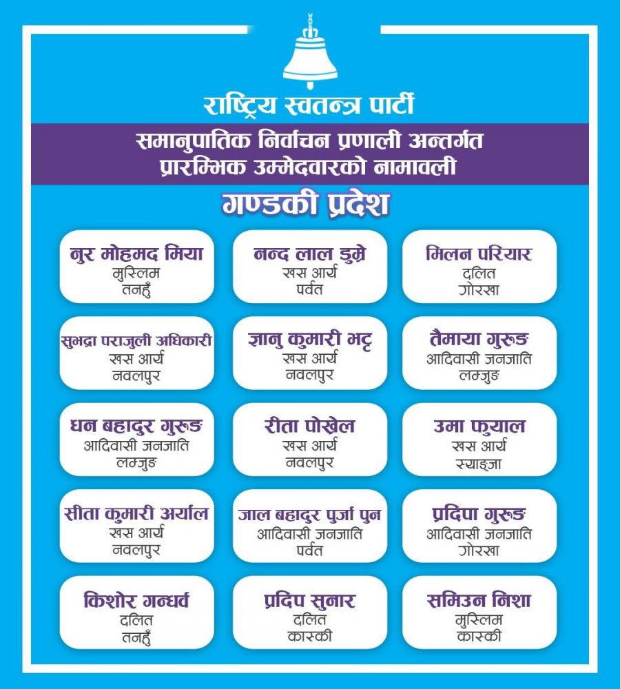 त्यसैगरि रास्वपाले तनहुँकै बुद्दिबहादुर पन्तलाई पनि दलित कोटामा गण्डकी प्रदेशबाट समानुपातिक उम्मेदवार छनोट गरेको छ ।
