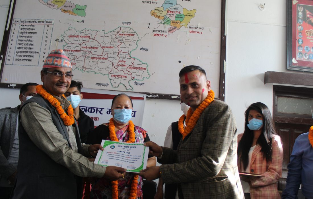 तनहूँ । नेपाल पत्रकार महासंघ तनहूँ शाखाको नवनिर्वाचित पदाधिकारीहरुलाई प्रमाणपत्र वितरण तथा पदस्थापना कार्यक्रम शुक्रवार सम्पन्न भयो । उक्त अवसरमा नवनिर्वाचत पदाधिकारीहरुलाई प्रमुख अतिथि गण्डकी प्रदेश सभा सदस्य सरिता गुरुङ, बिशेष अतिथि जिल्ला समन्वय समिति तनहूँका प्रमुख शान्तिरमण वाग्ले र निर्वाचन समितिका संयोजक कमलामोहन वाग्लेले दोसल्ला, अविर लगाई प्रमाण पत्र हस्तान्तरण गर्नुभएको थियो । उक्त अवसरमा सांसद श्रेष्ठले ”पत्रकारहरु स्वच्छ भएर काम गर्नुपर्ने ” बताउनुभएको थियो ।