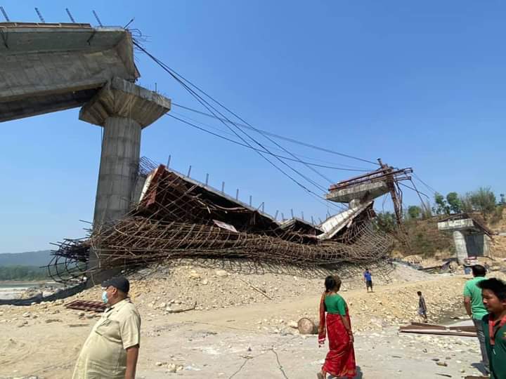 गण्डकी प्रदेशको तनहूॅ जिल्ला देवघाट गाउॅपालिका वडा नंं. ५ र वागमती प्रदेशको चितवन जिल्ला भरतपुर महानगरपालिका वडा नं.१ जोड्ने गरी त्रिशूली नदीमा निर्माणाधीन सडकपुल ३ साता नहुॅदै पुन: भत्किएको छ । तनहूॅ जिल्ला तर्फबाट दोस्रो span मा ढलानका लागि तयार गर्न लागिएको ट्रस आज बिहान झण्डै १० बजे नदीमा खसेको छ । ट्रस नदिमा खस्नेक्रममा काम गरिरहेका सबै कामदारहरू नदीमा खस्नपुग्नुभएको थियोे । नदिमा खस्ने मध्ये ६ जनन गम्भीर घाइते भएको र वहाँहरुको चितवनमा उपचार हुॅदैछ । नदिमा खसेका मध्ये केहि बेपत्ता भएको खबर प्राप्त भएको छ । यसभन्दा अगाडि पनि उक्त पुलको चितवन तर्फको दुई span मा भएको ढलान RCC स्ट्रक्चर खसेर पुल भग्नावशेष भएको थियो । Heavy RCC structure खसेर पिल्लरमा बज्रिदा पिल्लरलाई पनि निक्कै नोक्सान पुग्न गएको सहज अनुमान गरिएको छ । यस पुलको निर्माण व्यवसायी र सम्बन्धित निकायबाट तोकिएका प्राविधिकको चरम लापरवाहीले भौतिक र मानवीय क्षति त भएको छ नै समयमै पुल निर्माण भएर सहज र सुगम परिवेश प्राप्त गर्ने जनताको आशा अपेक्षामा बज्रपात भएको उक्त क्षेत्रका अगुवाहरुको घारणाा रहेको छ । पटक पटक पुल निर्माणका क्रममा भत्कने घटना भईरहेकोले अविलम्ब घटनाको सत्यतथ्य छानविन गरी निर्माण कार्यलाई सुचारु गर्न आवश्यक देखिएको छ ।(शिवराज पौडेलको फेसबुकबाट)