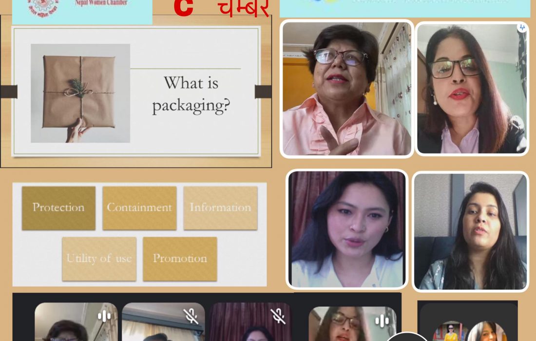 काठमाण्डौ । नेपाल चेम्बर अफ कमर्श अन्तर्गतको नेपाल महिला चेम्बरको आयोजनामा प्रोडक्ट प्याकेजिङ र ब्राण्डिङ सम्बन्धी कार्यशाला आज सम्पन्न भएको छ । जिबिजी नेपालको सहयोग माझ कार्यशाला १४ मे शुक्रबार अपरान्ह २स्३० देखी ४स्३० बजेसम्म भर्चुअल प्लेटफर्म गुगल मिट मार्फत आयोजनामा आएको हो ।