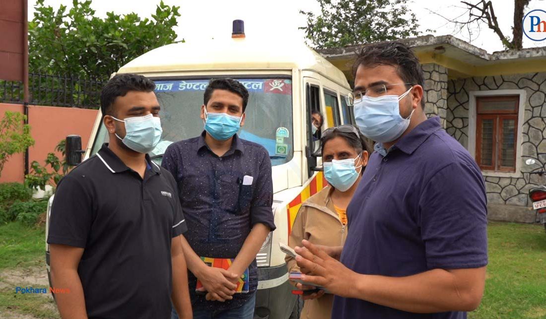 ॐ समाज डेन्टल हस्पिटलसँगको सहकार्यमा नेपाल प्रहरीका पूर्व प्रमुख सर्वेन्द्र खनालको नेतृत्वमा विभिन्न कलाकार तथा अभियन्ताको पहलकदमीमा काठमाण्डौबाट करिब तीन साता अघि शुरु भएको निःशुल्क एम्बुलेन्स अभियान बुधबारबाट पोखरामा पनि सञ्चालन गर्न लागिएको अभियान टोलीका सदस्य एवम् प्रवक्ता ज्ञानेन्द्र शाहीले जानकारी दिनुभयो ।