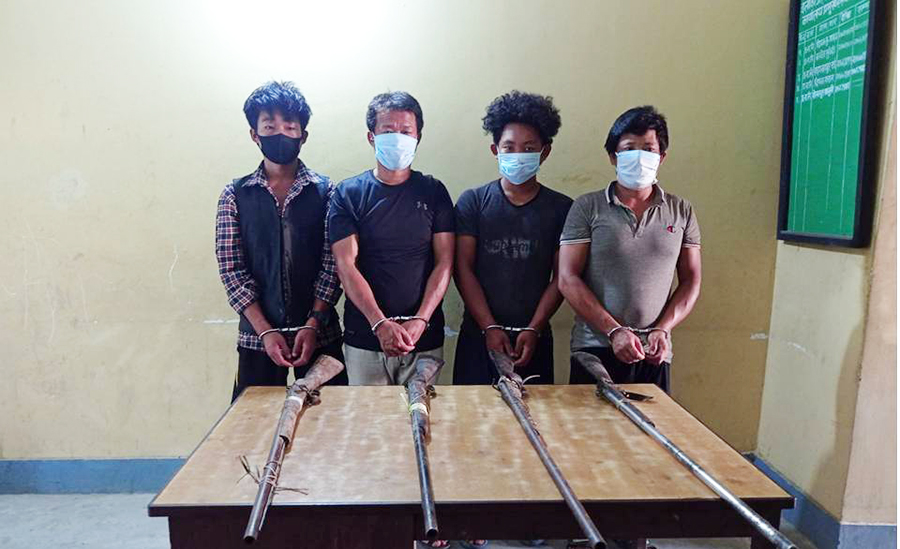 जिल्ला प्रहरी कार्यालय मोरङका प्रहरी नायब उपरीक्षक मानबहादुर राईका अनुसार मोरङको केराबारी गाउँपालिका–३ का ४४ वर्षीय डिकबहादुर राई, ३६ वर्षीय बुद्धवीर लिम्बू, १९ वर्षीय रामप्रसाद राई र लेटाङ नगरपालिका–१ का १९ वर्षीय विपन लिम्बू पक्राउ परेका हुन् ।
