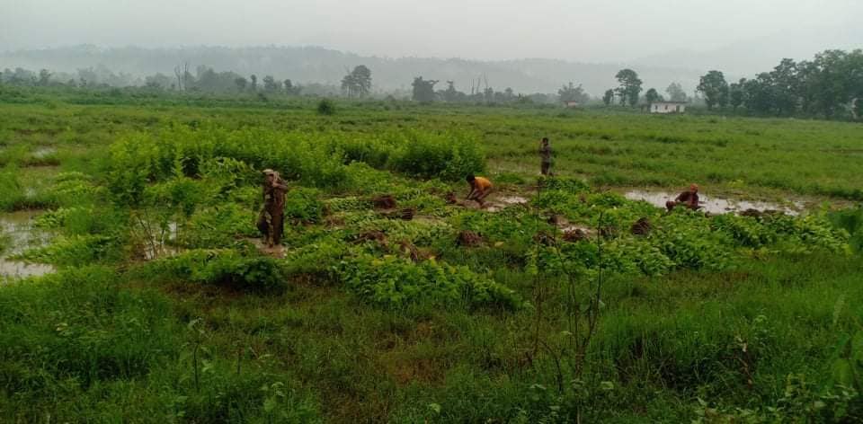 तनहूँ । बाख्रा पालनमा जिल्लामै अगाडि रहेको बन्दिपुर गाउँपालिकाका किसानहरु किम्बु नर्सरी बिकास केन्द्र भण्डारा, चितवनमा किम्बुको बिरुवाहरु संकलन गर्दै । बिरुवा संकलन गर्दै बन्दिपुर गाउँपालिका वडा नं. १ का ब्याबसायिक बाख्रा पालक किसान र बन्दिपुर गाउँपालिका वडा नं. १ का अध्यक्ष भानुभक्त पोखरेल ।