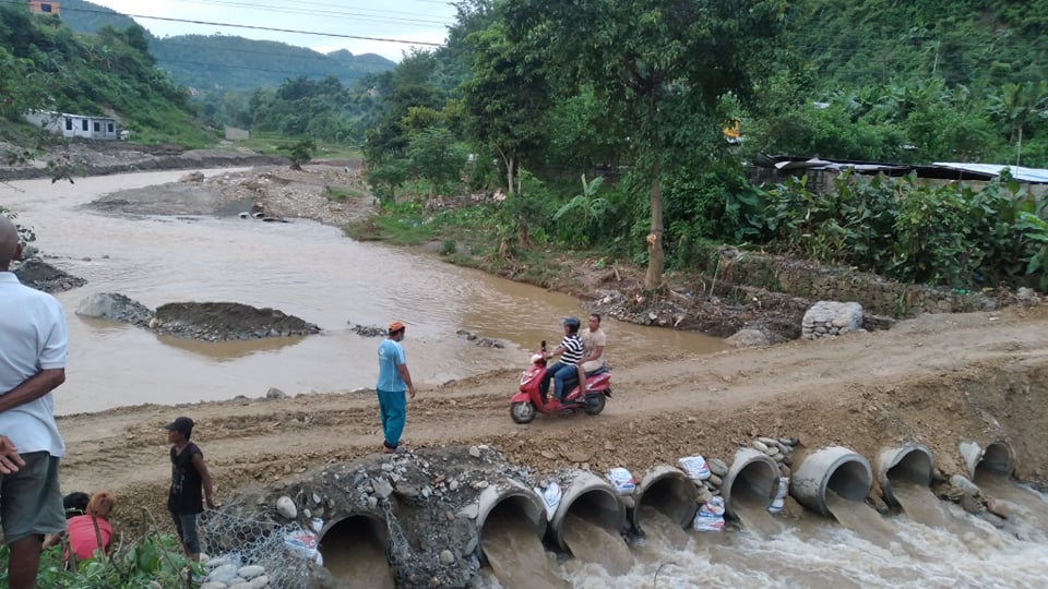 तनहूँ । केहिदिन अगाडिको बाढिले पुल बगाएपछि अवरुद्ध भएको व्यास नगरपालिका वडा नं. १ र १३ जोड्ने सडक आजबाट संचालनमा आएको छ । व्यास नगरपालिकाको सक्रियतामा ह्युम पाईप हालेर अस्थायी रुपमा उक्त बाटो संचालनमा ल्याईएको छ । बेलिब्रिज चाडै नै आउने कुरा भईरहेको र ह्युम पाईप हालेर अस्थायी रुपमा बाटो संचालन भएपश्चात धेरै सहज भएको स्थानियवासीको भनाई रहेको छ ।