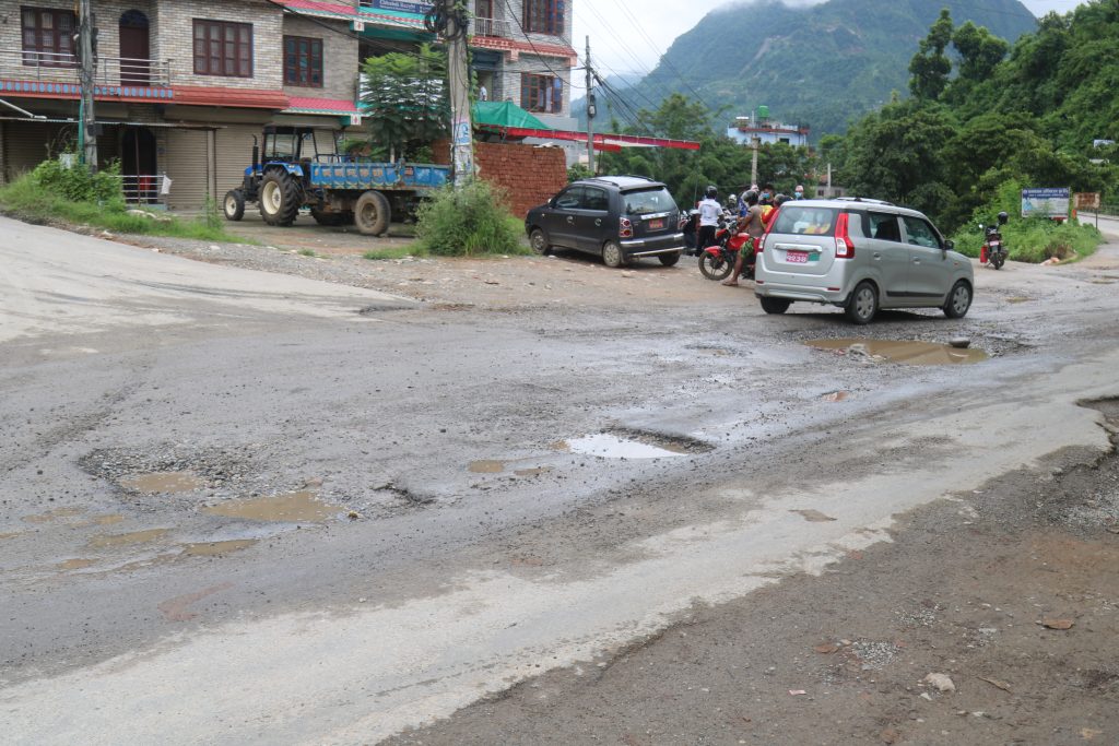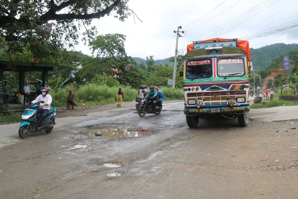 तनहूँ । नेपाल प्रमुख राजमार्ग मध्ये एक पृथ्वी राजमार्गको दमौली मुग्लिन सडकखण्डको व्यास नगरपालिका वडा नं. १ गल्बुबेसी चोक( प्रख्यात छाव्दि बाराही मन्दिर जाने गेट) मा बर्षको कम्तिमा १२ पटक सडकमा खाल्टाखुल्टी बन्ने गरेका छन् र धेरैमा ५,७ पटक पिच गर्ने पनि काम हुन्छ । रमाइलो कुरा के छ भने आज पिच गर्यो ढिलोमा १ हप्ताभित्र पिच भत्किएको देख्न पाइन्छ । सौभागयवश ठुला दुर्घटनाहरु नभएपनि व्यस्त सडक , खाल्डाखुल्टीले गर्दा यस स्थानमा सानातिना सडक दुर्घटनामात्र भईरहेका छन् । सडक डिभिजन कार्यालयलाई एउटा प्रश्न बलियो पिच गरेर बर्षौ टिकाउ भए केहि बिग्रन्छ र ? कि राजमार्गका सयौ ठाउँमा देखिने यस्ता खाल्डाखुल्डी बलियो गरि पिच गरे अरुबेला काम नपाईने? बेलाबेलामा पिच गरे कमिशन आउछ कि के हो ? दुर्घटनाको खबर सुन्दा, सवारी साधन र सर्वसाधारणलाई सास्ति भएको देख्दा तपाईहरुलाई आनन्द आउछ कि के हो ? लाजको पसारो !