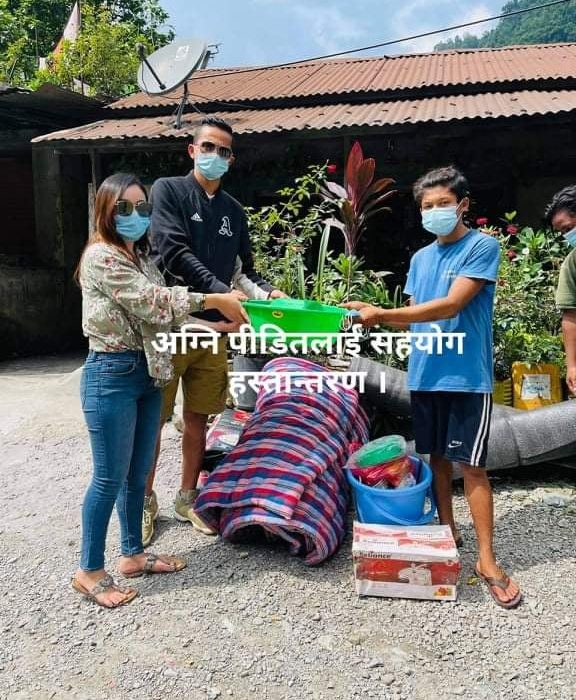 तनहूँ । युवा समाजसेवी तथा व्यवसायी अभियान श्रेष्ठले सोमबार अग्नि पीडित र क्लबलाई ५० हजार रुपैयाँ बराबरको विभिन्न सहयोग सामाग्री हस्तान्तरण गर्नुभएको छ । श्रेष्ठले आँबुखैरेनी गाउँपालिका वडा नंं ५, बरालुङबेसि स्थित अग्नि पीडित स्यानी भुजेलको परिवारलाई ४० हजार रुपैयाँ बराबरको खाद्यान्न, भाँडाकुडा, सिरक डसना लगाएतका सहयोग सामाग्री हस्तान्तरण गर्नुभएको हो । गत असार २९ गते बिधुत सर्ट भई अचानक आगलागी हुँदा घरमा रहेको अन्नपात, लत्ताकपडा, भाडाकुडा जलेर पुर्ण रुपले नस्ट भएको थियो । अग्नि पीडितको परिवारलाई राहत स्वरुप डेक्ची १ थान, कराही १ थान, थाल ५ थान,बाल्टिन १ थान, बाटा १ थान, केत्ली १ थान, कुकर १ थान, गिलास ५ थान, कचौरा ५ थान, जग १ थान, चामल २ बोरा, ५ केजि दाल, २ पोका नुन, बेसार(मसला ३ पोका, डसना २ थान, तन्ना २ थान, सिरानी ३ थान र सिरक २ थान हस्तान्तरण गरिएको श्रेष्ठले जानकारी दिनुभएको छ । यसैगरी, आँबुखैरेनी गाउँपालिका(५, बरालुङबेसि कै जनचेतना युवा क्लबलाई १० हजार रुपैयाँ बराबरको खेलकुद सामाग्री सहयोग हस्तान्तरण गर्नुभएको छ । क्लबका सदस्य राजेश गुरुङलाई खेलकुद सामाग्री अन्तर्गत ३ थान भलिबल, १ थान पम्प र १ थान नेट हस्तान्तरण गर्नुभएको उहाँले बताउनुभएको छ ।