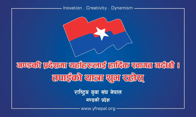 पोखरा । गण्डकी प्रदेशमा प्रबेश गर्नु हुने अतिथिहरूलाई स्वागतका लागि राष्ट्रिय युवा संघ नेपाल गण्डकी प्रदेश कमिटि द्वारा स्वागत होर्डिगं बोर्ड प्रदेशको पुर्वी नाका मुग्लिङ पुलको पोखरा तर्फ आउने सडक पेटीमाथि आज एक कार्यक्रमका बिच राखिएको छ। राष्ट्रिय युवा संघ नेपाल गण्डकी प्रदेश अध्यक्ष एबम केन्द्रिय सचीव महेन्द्र गुरुङ को अध्यक्षता मा भएको कार्यक्रमको प्रमुख अतिथि युवा संघ का पुर्ब अध्यक्ष एबम गण्डकी प्रदेश साम्सद माननियि राजिव पहारी रहनु भएको थियो । अन्य अतिथिहरुमा संघका प्रदेश सह ईन्चार्ज क. गोविन्द बस्नेत,उपाध्यक्ष क. खिलु राना लगायत स्थायी कमिटि सदस्य ,सचिवालय तथा केन्द्रिय सदस्यहरूको उपस्थिति रहेको थियो । कार्यक्रम बोल्दै प्रमुख अतिथि पाहारीले गरिबको छाती माथी लात हान्ने यो परमादेशको सरकार विरुद्ध फेरि एकपटक तमाम युबा सडकमा उत्रने बेला आएको बताउनुभयो । सरकारले एकपछि अर्को जनबिरोधी काम गर्दै गएमा युब संघ चुप लगेर नबस्ने चेतावनी समेत दिनु भयो। कार्यक्रमको समापन गर्दै अध्यक्ष गुरुङले जनबिरोधि काम गर्ने सरकारको विरुद्ध आन्दोलनको लागि तयार रहन सम्पूर्ण युबा संघका साथीहरूलाई आग्रह समेत गर्नु भयो । भर्खरै मात्र देउवा सरकार ले खारेजी गरेको सुकुम्बासी आयोग तत्काल सच्याउन माग समेत गरेको छ ।कार्यक्रममा तनहुं,गोर्खा,लमजुङ र कास्कीका युवाहरु को बाक्लो उपस्थिति रहेको थियो ।