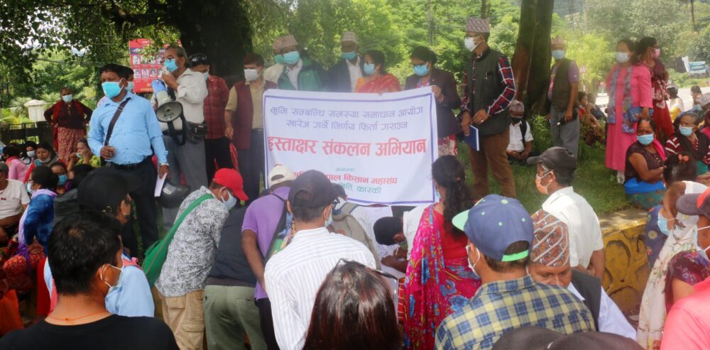 अखिल नेपाल किसान महासङ्घ कास्की शाखाले जिल्ला प्रशासन कार्यालय अघिको शहिदचोकस्थित चौतारामा हस्ताक्षर अभियान सञ्चालन गरेको थियो । वर्षौदेखि खनजोत एवं उपयोग गर्दै आएका किसान र सुकुम्बासीलाई जग्गाको मालिक बनाउने लक्ष्यका साथ काम गरिरहेको आयोग खारेजीको विरोधमा हस्ताक्षर सङ्कलन गरिएको अध्यक्ष रघुनाथ भण्डारीले जानकारी दिनुभयो ।