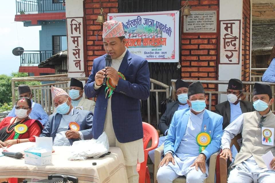 तनहूँ । नेपालको मौलिक कला र संस्कृति नेवारी संस्कृतिको उत्थानको लागि ऋषिगं गाउँपालिकामा बार्षिक रुपमा विविध कार्यक्रमहरुको आयोजना गर्ने गरिन्छ । त्यसैक्रममा ऋषिगं गाउँपालिकाका अध्यक्ष राजेन्द्रकृष्ण श्रेष्ठले वडा नं. ८ चारघरेमा आज नेवारी संस्कृति र जात्रा प्रर्दशनी कार्यक्रमको उद्घाटन गर्नुभयो । कार्यक्रमको उद्घाटन गर्दै उहाँले नेपालको मौलिक कला भएकोले नेवारी कला र संस्कृतिलाई जोगाउनको लागि सबै लागि पर्नुपर्ने र गाउँपालिकाको सधै यसमा सहयोग रहने बताउनुभएको थियो ।