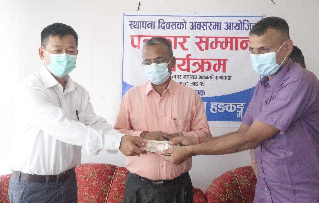 त्यस्तै पत्रकार अमरराज नहर्कीले युवा पत्रकारिता पुरस्कारको रकममा थप गरी पत्रकार कल्याणकारी कोषलाई सहयोग गर्नुभएको छ । नहर्कीले तनहूँ समाज हङकङबाट पाएको पुरस्कारको रकम पत्रकार महासंघद्वारा स्थापित पत्रकार कल्याणकारी कोषलाई ५ हजार ५ सय ५५ रुपैयाँ सहयोग गर्नुभएको छ ।