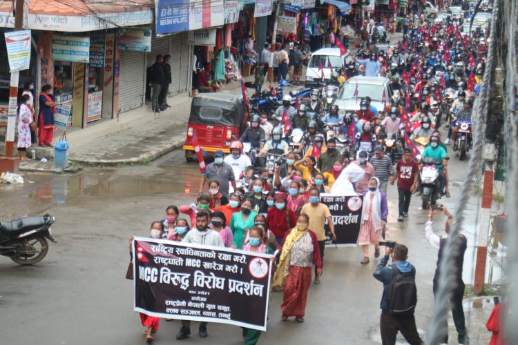 तनहूँ । नेपाल र नेपाली माझ यतिबेला अत्याधिक चासो र विवाददित रहेको अमेरिकी परियोजना MCC को विरोधमा दमौलीमा एक विरोध कार्यक्रमको आयोजना गरियो । क्लब संजाल व्यासको आयोजनामा भएको कार्यक्रम स्वतस्फुर्त रुपमा जागेका सयौ युवाहरुले युवाहरुले मोटर साईकल तथा पैदल दमौली बजार परिक्रमा गर्दै MCC चाहिदैन, देश बेच्न पाईदैन भन्ने नारा लगाउनुभएको थियो । दमौली बजार परिक्रमा पश्चात उत्तः र्यालीले जिल्ला प्रशासन चोकमा कोणसभा राखि उक्त कार्यक्रमका अभियन्ता मित्र दुराले आफ्नो भनाई राख्नुभएको थियो । उक्त अवसरमा दुराले बहुदल आएपश्चात पनि सबै पार्टीका नेताहरु असफल भईराख्दा पनि जनता चुप लागेकोमा अब राष्टघाति राष्ट्रप्रेमी नेपाली युवा समुह, र क्लव संजाल व्याससम्झौता गर्न लाग्दा चुप नलाग्ने बताउनुभएको थियो । कोणसभा पश्चात उक्त र्र्याली प्रधानमन्त्री शेरबहादुर देउवाको नामको ज्ञापनपत्र बुझाउन जिल्ला प्रशासन कार्यालय तनहूँमा पुगेको थियो । राष्ट्रप्रेमी नेपाली युवा समुह व्यासका संयोजक रामकृष्ण क्षेत्री, अभियन्ता मित्र दुरा, राजेश मल्ल लगायतका प्रमुख जिल्ला अधिकारीलाई ज्ञापनपत्र बुझाउनुभएको थियो । ज्ञापनपत्र बुझ्दै प्रमुख जिल्ला अधिकारीले सम्बन्धित कार्यालयमा उक्त ज्ञापनपत्र बmुझाउने प्रतिवद्धता व्यक्त गर्नुभएको थियो ।