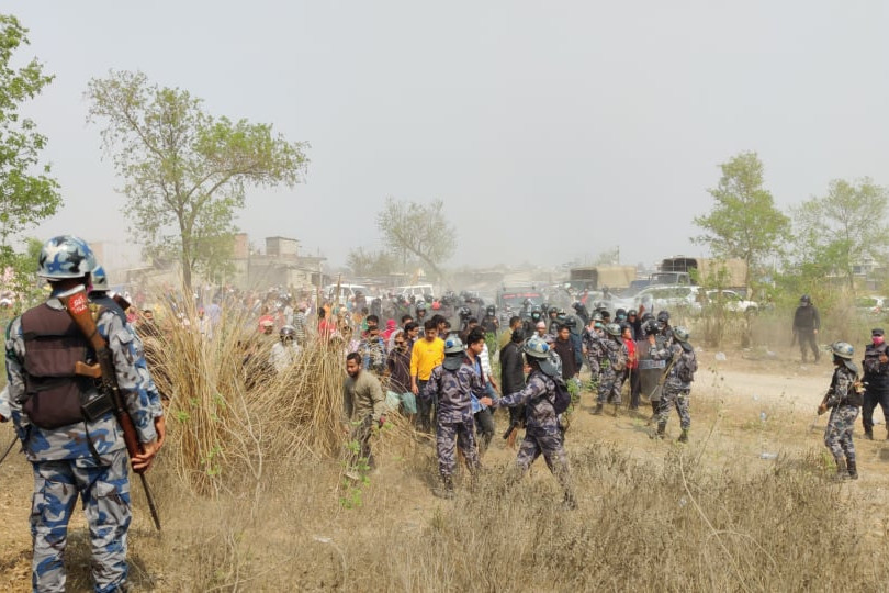 औद्योगिक क्षेत्रको करिब साढे ८०० बिघा जग्गामध्ये ४०० बिघा जग्गा अतिक्रमण भएको छ । आइतबार बिहान ५ बजेदेखि नै तैनाथ भएका प्रहरीले अस्थायी रूपमा बनाइएका टहराहरू भत्काउन खोज्दा स्थानीयसँग झडप भएको हो ।