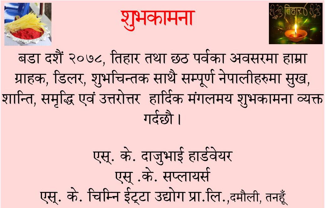 बडा दशै, तिहार, छठ पर्वको अवसरमा सबैलाई शुभकामना