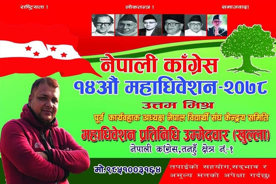 सानै उमेरदेखि नेपाली कांग्रेसको लागि रगत पसिना बगाउनुभएका बिशेषगरि विद्यार्थीहरुमाझ बौद्धिक व्यक्तित्वका रुपमा परिचित उत्तम मिश्रलाई न्याय मिल्ला कि नमिल्ला त्यसको लागि अब केहि दिन कुनुपर्ने छ ।