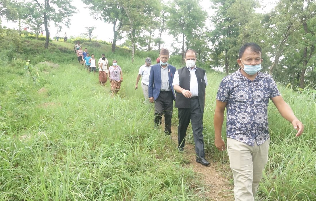 तनहूँ । तनहूँ जिल्ला व्यास नगरपालिका वडा नं. ११ रामथुम्किी गिदेरी पानीमा ढुगां खानीको चेपेटो र पहिरोको मारमा परेका बिस्थापित घर परिवारहरुलाई भेटघाट गर्न जादै गण्डकी प्रदेश सांसद रामबहादुर गुरुगं र जिल्ला प्रमुख जिल्ला अधिकारी सागर आचार्य ।