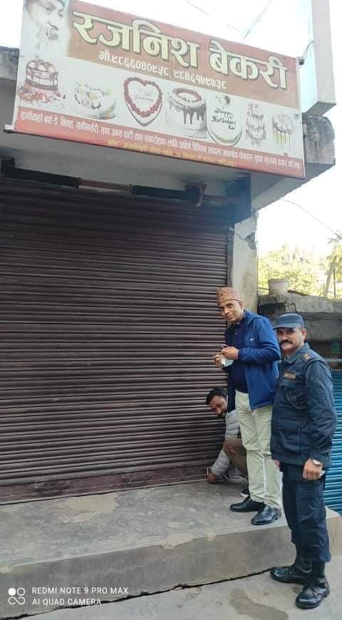 बेकरी उद्योग भनि संचालन गरेको उक्त उद्योग र त्यसैका संचालकद्धारा संचालन गरिएको पसल संचालनको लागि योग्य नभएको कारणले ताला लगाईएको र जिल्ला प्रशासन कार्यालयमा हाजिर हुन निर्देशन दिईएको सहायक प्रमुख जिल्ला अधिकारी बरालले बताउनु भएको छ ।