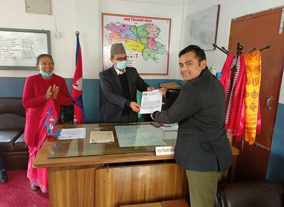 तनहूँ । राष्ट्रिय प्रजातन्त्र पार्टी तनहूँले प्रधानमन्त्रीलाई ज्ञापन पत्र बुझाएको छ । ३०० औं पृथ्वी जयन्ती एवं राष्ट्रिय एकता दिवसको अवसरमा सर्वाजनिक विदा माग गर्दै तनहूँका प्रमुख जिल्ला अधिकारी मार्फत प्रधानमन्त्री कार्यालयलाई ज्ञापन पत्र हस्तान्तरण गरेको हो ।