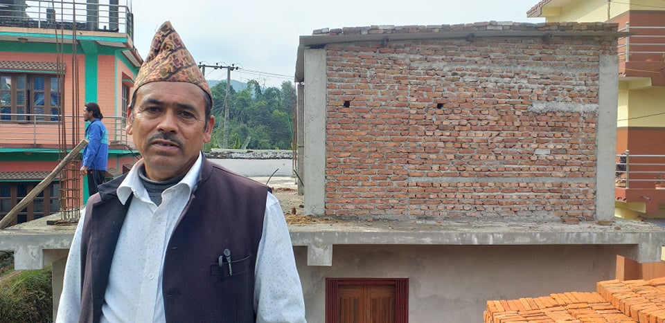 (संस्थाका अध्यक्ष डिल्लीराम सापकोटा र पछाडि निर्माणाधिन भवन)