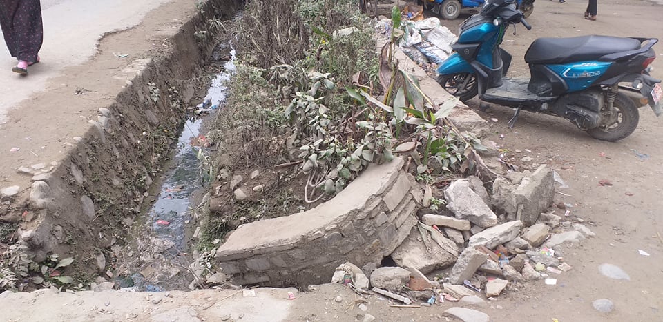(व्यास नगरपालिकाको कार्यालयबाट २० मिटरको दुरीमा रहेको नालीको अवस्था)